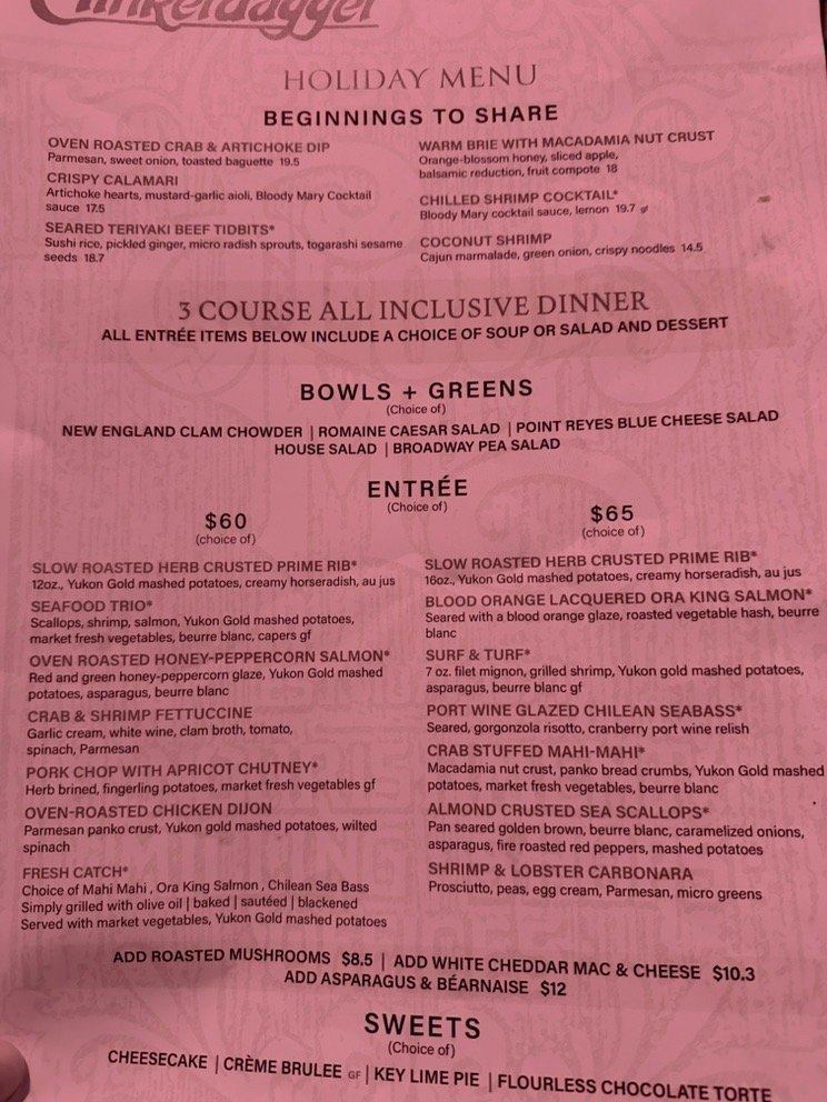 Clinkerdagger, located in Spokane, WA, is a seafood, American, and steakhouse restaurant that offers a wide range of options for all diners. From taking reservations to providing delivery and takeout services, this establishment strives to cater to all needs. With options like keto, vegan, and vegetarian dishes, Clinkerdagger is inclusive of various dietary preferences. The restaurant is wheelchair accessible, accepts credit cards and Apple Pay, and offers outdoor seating. The casual atmosphere and moderate noise level make it a great spot for groups, families, and dinner outings. With amenities like a full bar, TV, happy hour specials, and catering services, Clinkerdagger ensures a memorable dining experience. Whether you're in the mood for seafood, American classics, or a hearty steak, this restaurant has something for everyone.